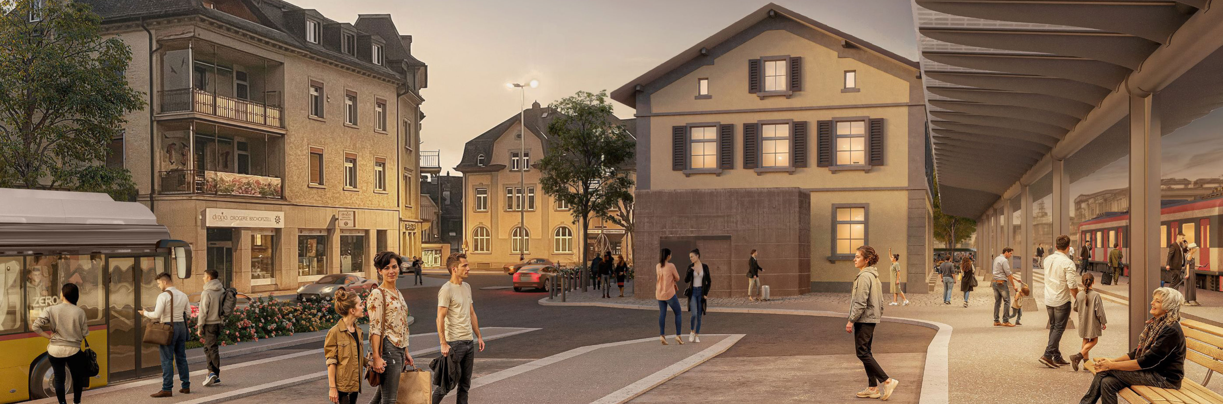 Der Bahnhofplatz Bischofszell Stadt ist die Mobilitäts-Drehscheibe der Region und ein beliebter Treffpunkt. Attraktivität und Sicherheit sollen mit der Neugestaltung erhöht werden und klare Mehrwerte schaffen – einerseits für die Nutzenden des Öffentlichen Verkehrs, für ankommende Besucherinnen und Besucher und als zentralgelegener Parkplatz.